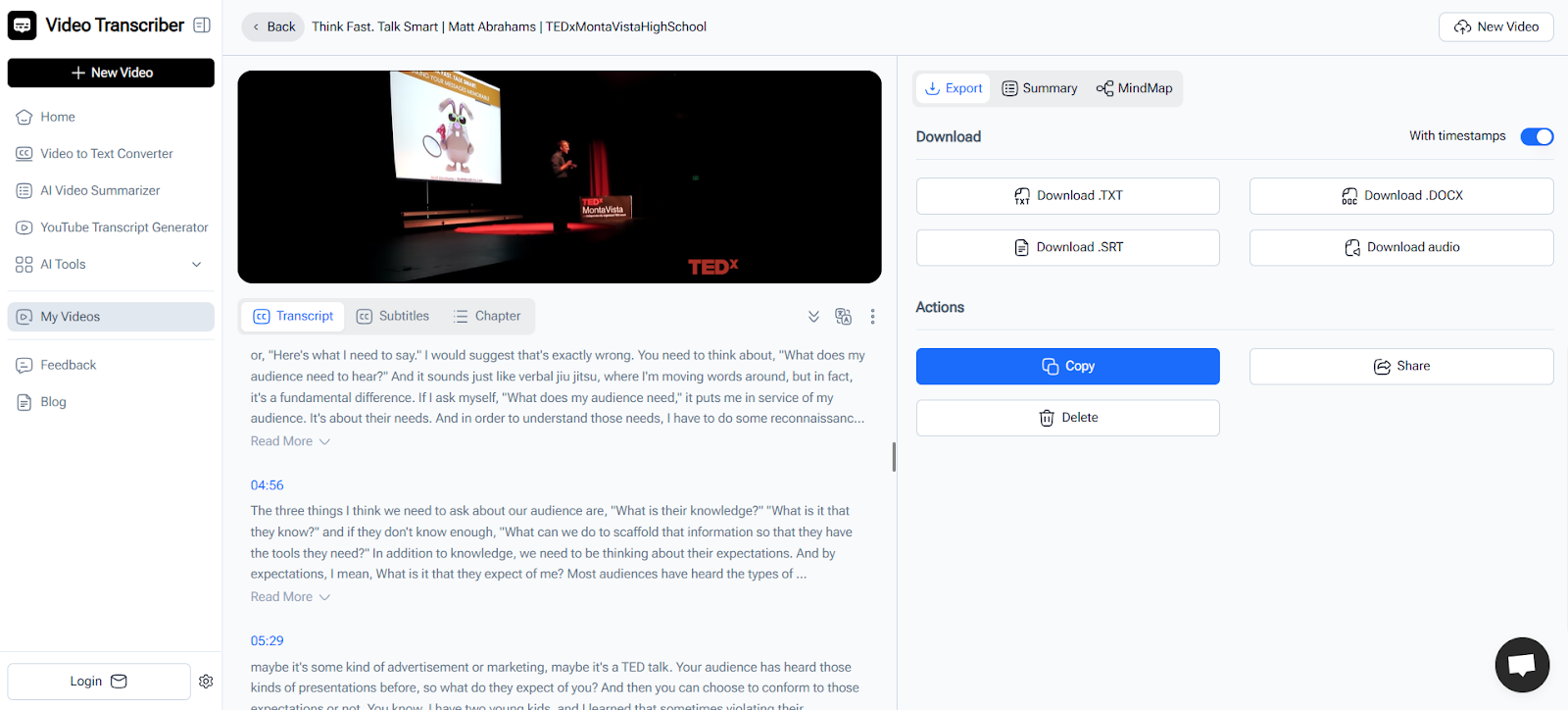 Instead of pausing videos repeatedly, learners can rely on a clean transcript that supports efficient learning.