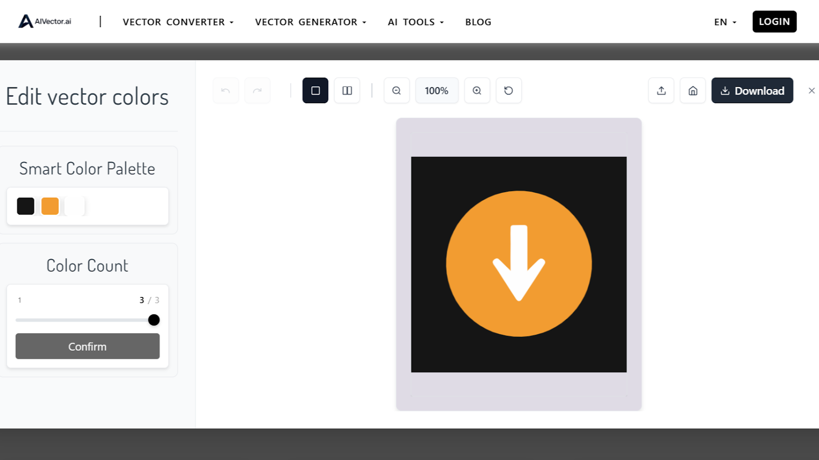 (AIVector Convert PNG to SVG Instantly result interface)