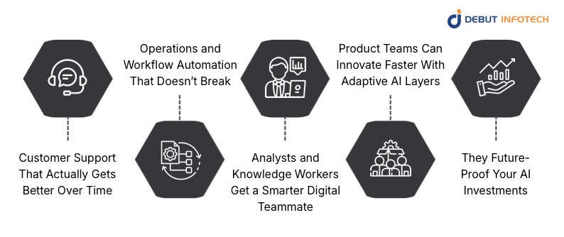 Implementing self-evolving agents involves orchestrating tools, designing feedback systems, aligning metrics, and ensuring the agent evolves safely. This is exactly where specialized AI agent development services like Debut Infotech Pvt Ltd can save you months (and sometimes years) of trial and error.