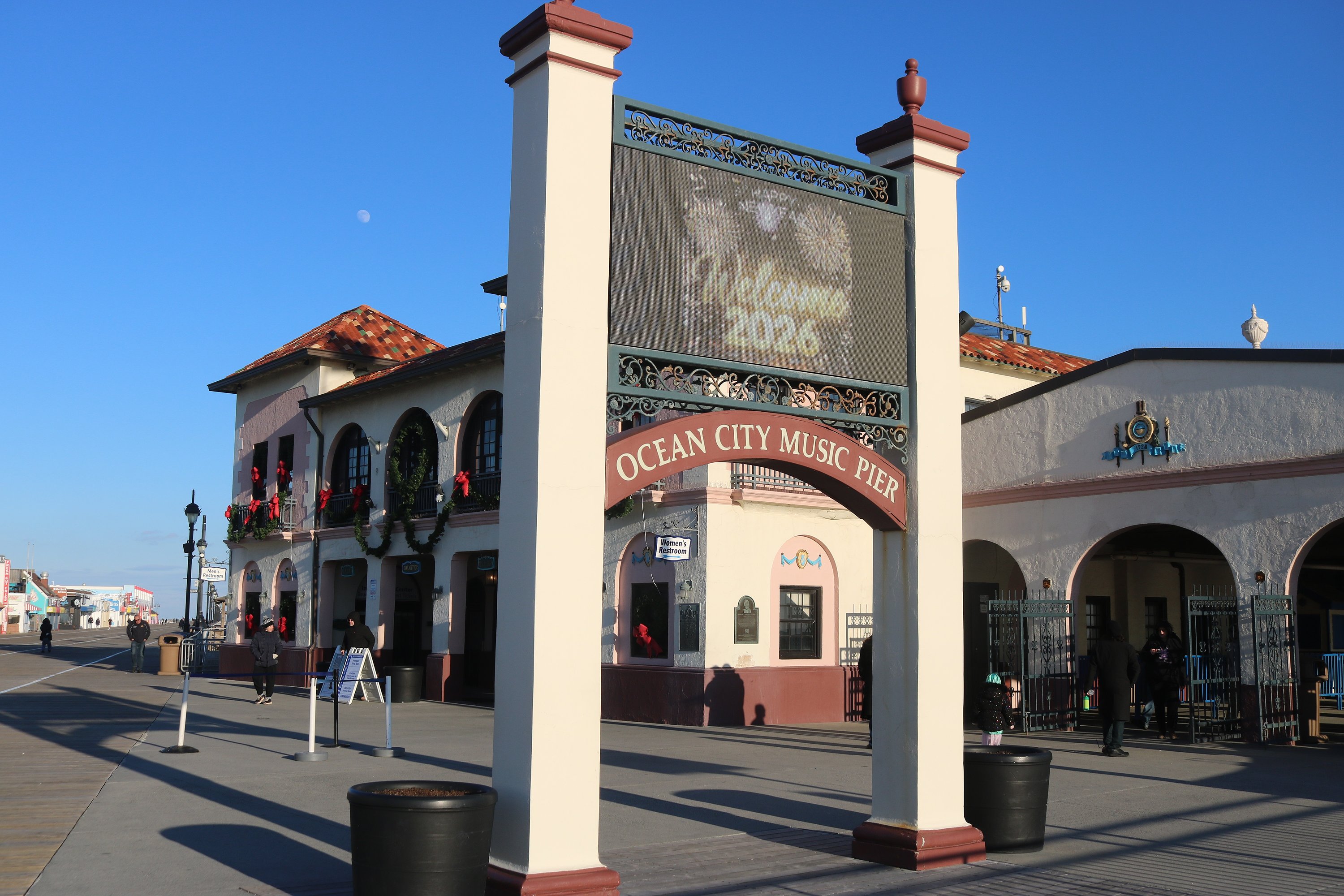 The digital sign outside the Ocean City Music Pier welcomes the arrival of 2026.