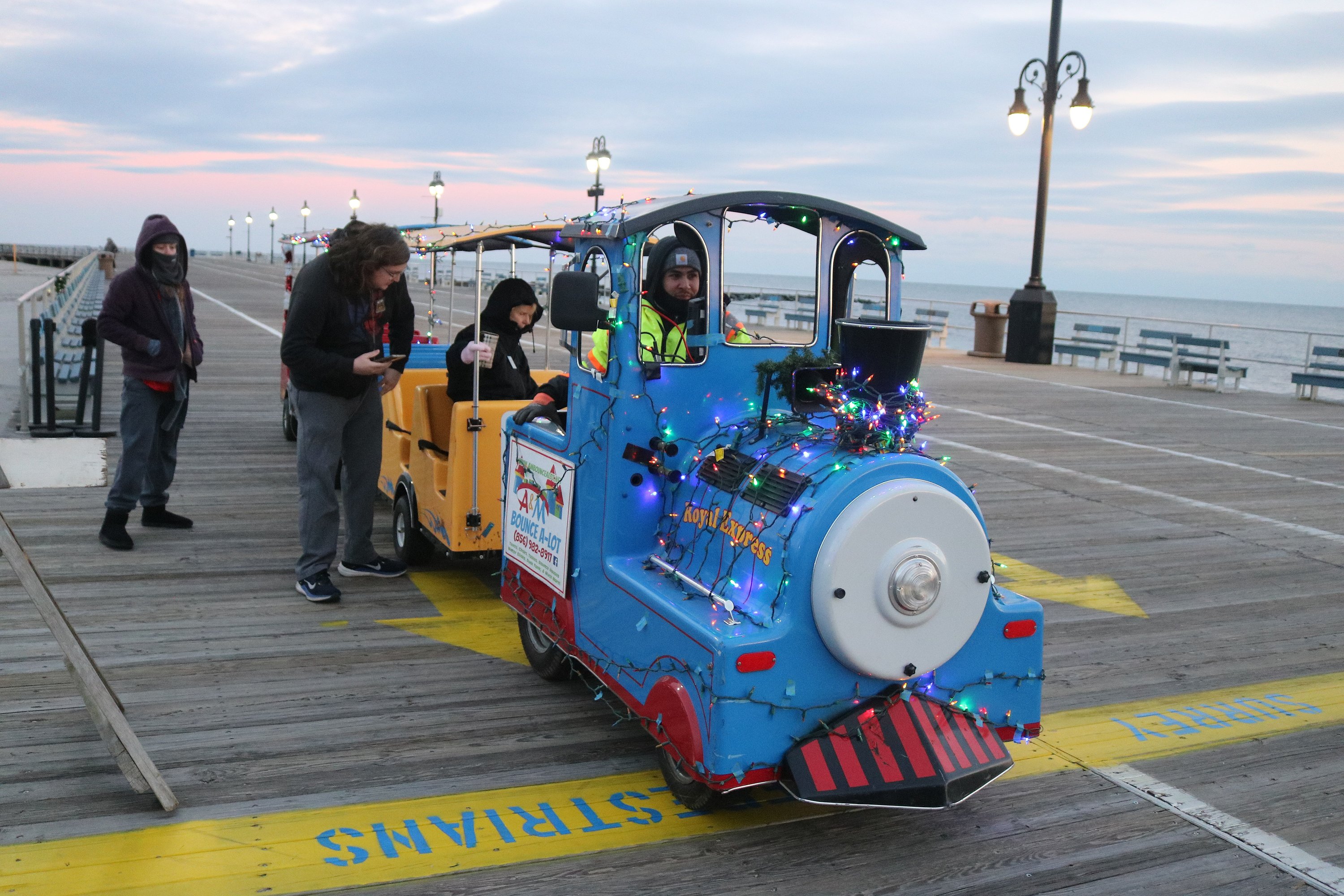A choo-choo train waits to pick up passengers on the Boardwalk.