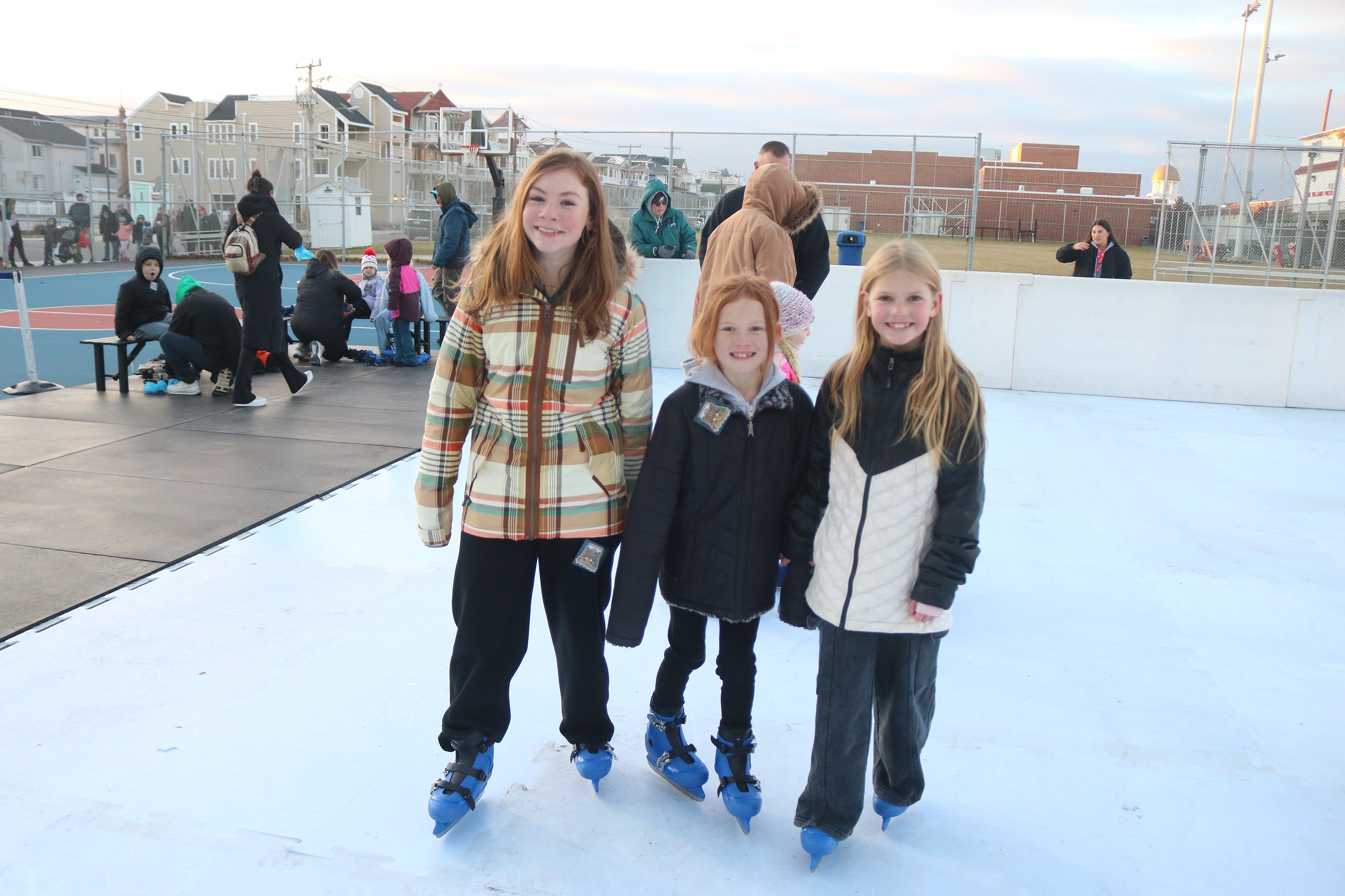 Bailey, Finley and Hadley were all trying their luck on an artificial ice-skating rink set up outside the Civic Center as part of the New Year’s Eve activities.