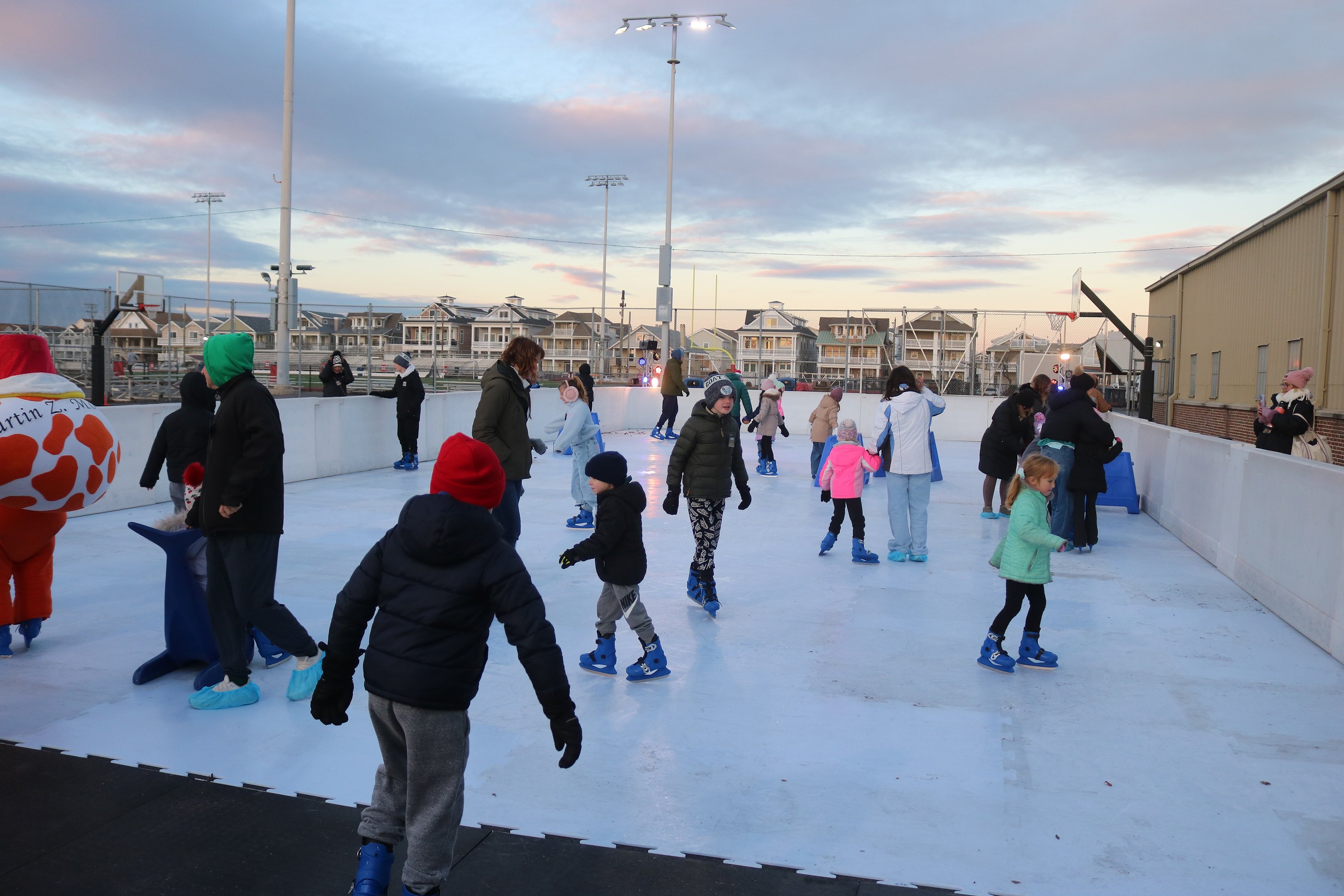 The basketball courts outside the Civic Center are transformed into an artificial ice-skating rink.