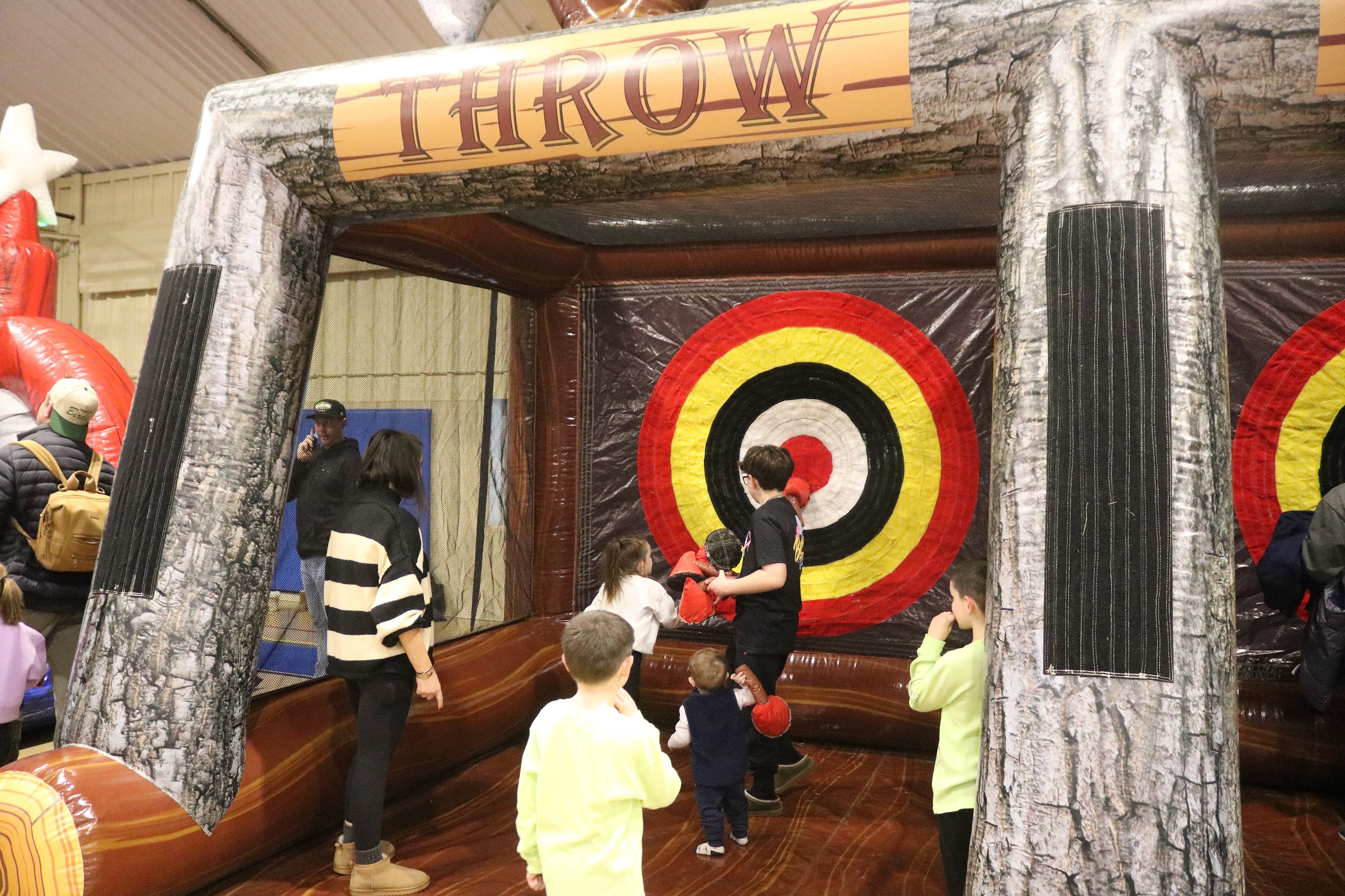 Kids try out some of the inflatable games at the Civic Center.