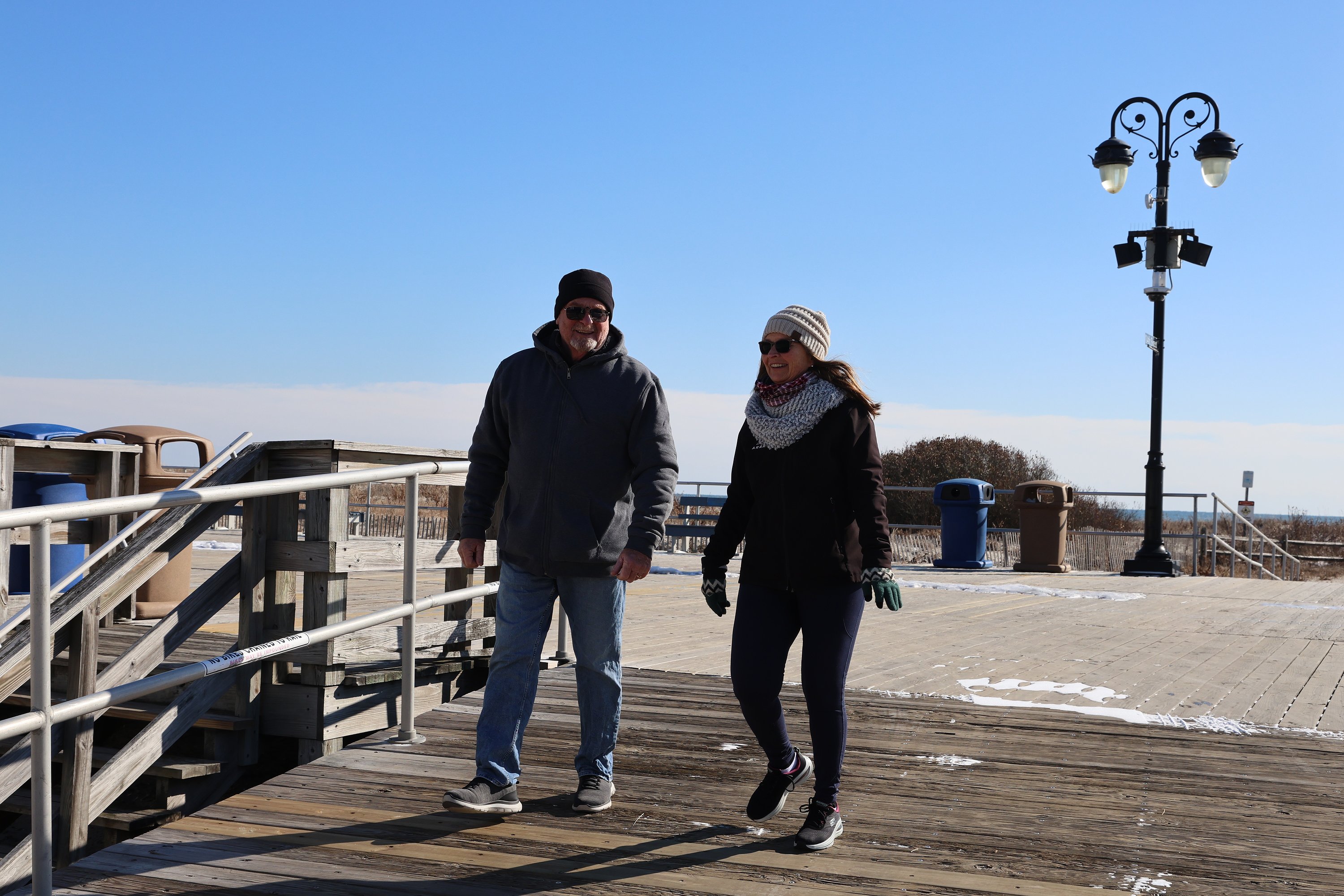 Ocean City residents Val and Lucy Mats were bundled up in warm coats and winter hats Wednesday while taking their daily three-mile walk on the Boardwalk.