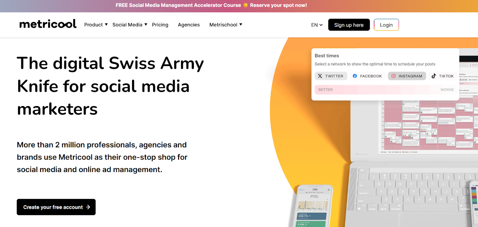 Metricool is a scheduling tool built for marketers who rely on detailed insights to fine-tune their social media strategy.