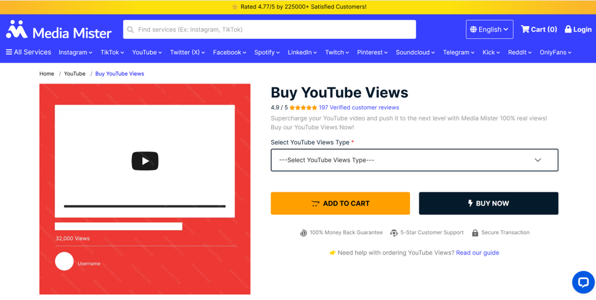 Media Mister's 30-day refund policy demonstrates confidence in their service quality while providing customer protection if the views are not delivered. Media Mister offers scalable packages ranging from 25, 50, 100 views up to 500 views, with larger bulk options available for comprehensive campaigns.