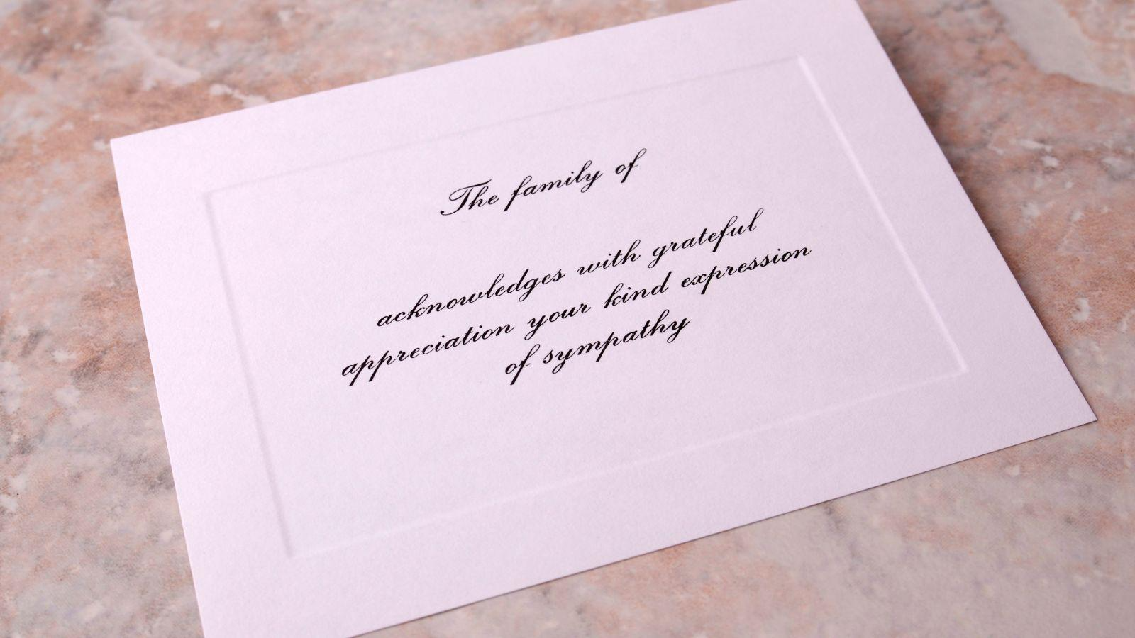 Even if your note is short, placing it in a card provides the tangible, physical expression of sympathy. Cards are stored, re-read, and valued. If you're writing in a sympathy card, place: