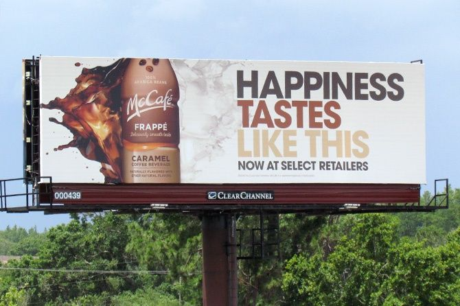 Billboard advertisements are all about design. High contrast color, readable fonts, and strong images make the message easily understood even at a distance. Examples of the most noticeable billboards consist of seven words or fewer, and the words in them are selected with care in terms of word clarity and word emotion. Every aspect, such as the positioning of the logo and the use of lighting, has a purpose in directing the eyes of the viewer. An aesthetic balance of composition can make a matter of seconds of exposure count to a memorable brand impression that will remain in commuters ' minds long after they pass by.