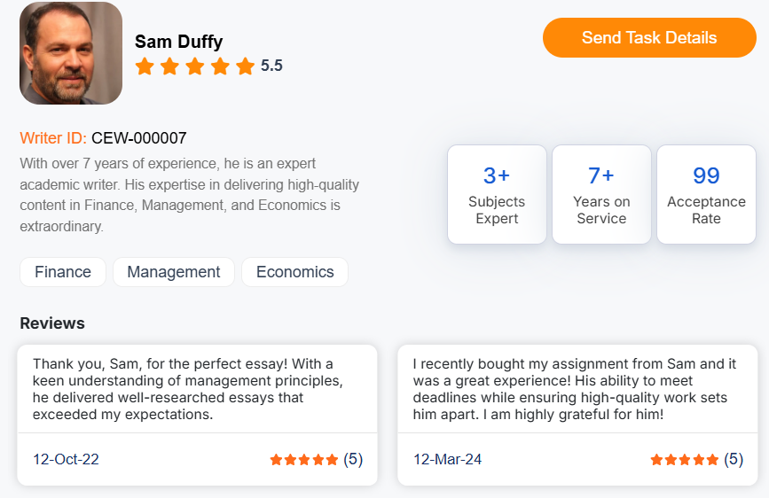 I earned an A+ grade on this MBA essay that I wrote with the assistance provided by the expert writer at Cheap Essay Writing UK. With my smooth experience and all the positive outcomes, I decided to make them my academic partner during my MBA degree.