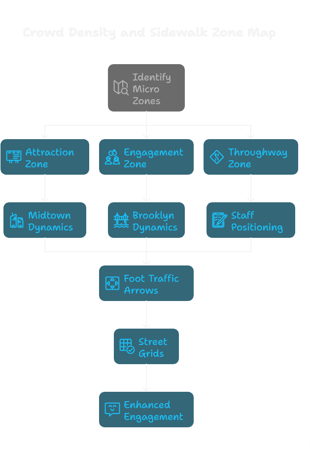 The difference isn't talent. It's staff positioning. In Midtown, you're managing throughway integrity—two staff members holding the edges of your zone to prevent sidewalk gridlock. In Brooklyn, you're creating threshold comfort. You're standing in the engagement zone, not guarding the perimeter.