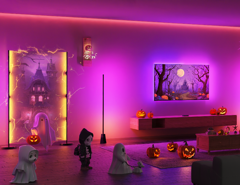 In a home office, balance between ambient, task, and accent lighting is key. Use neutral or cool light during the day to maintain focus and energy levels. Task lighting, such as a smart floor lamp positioned on your desk, provides extra brightness without glare. Accent lighting, such as backlit shelves or artwork, adds depth and visual interest without overwhelming the space.