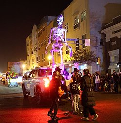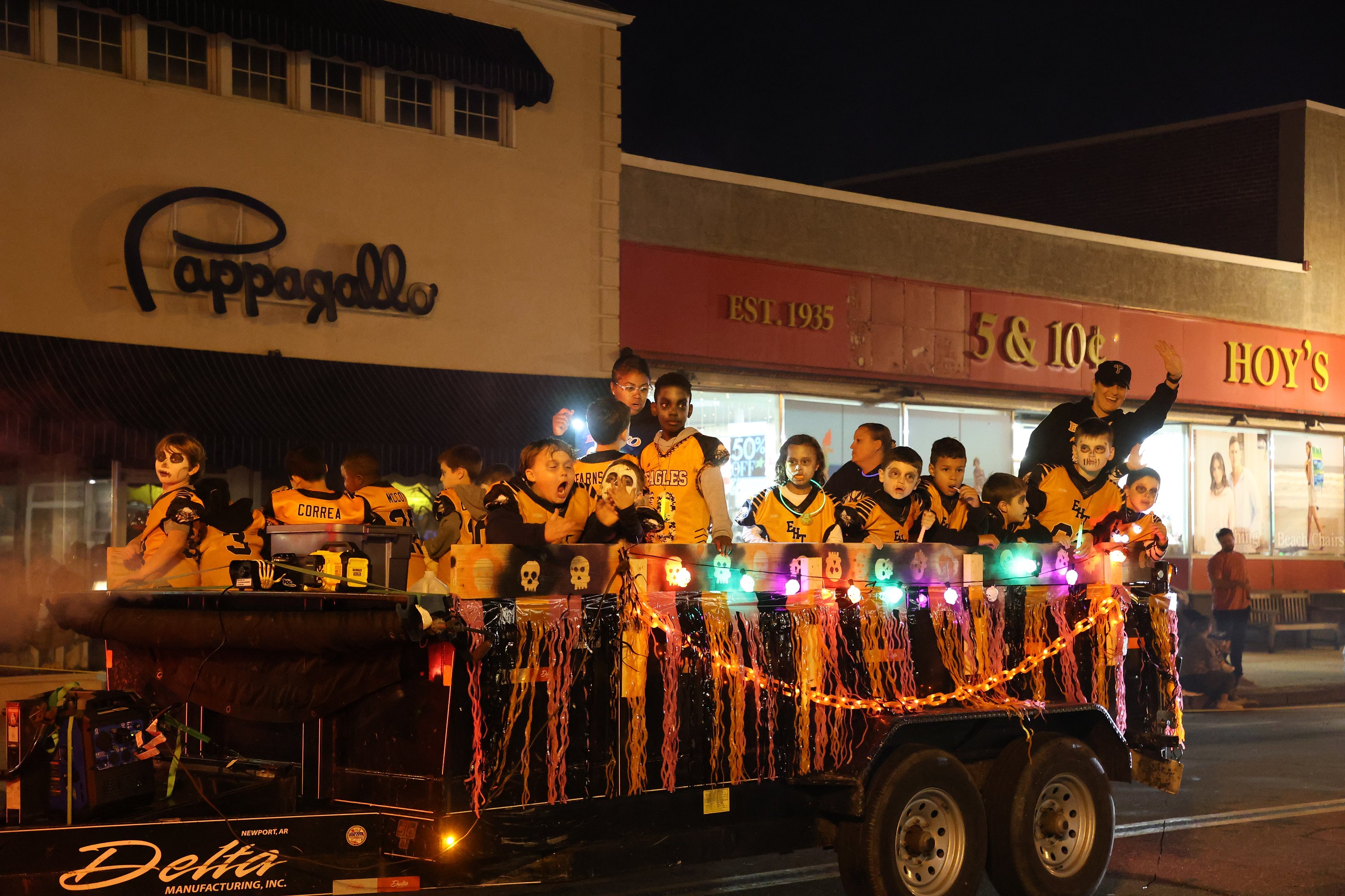 Costumed community members paraded through downtown, handing out candy as families lined the sidewalks, cheering, laughing and holding out their trick-or-treat bags.