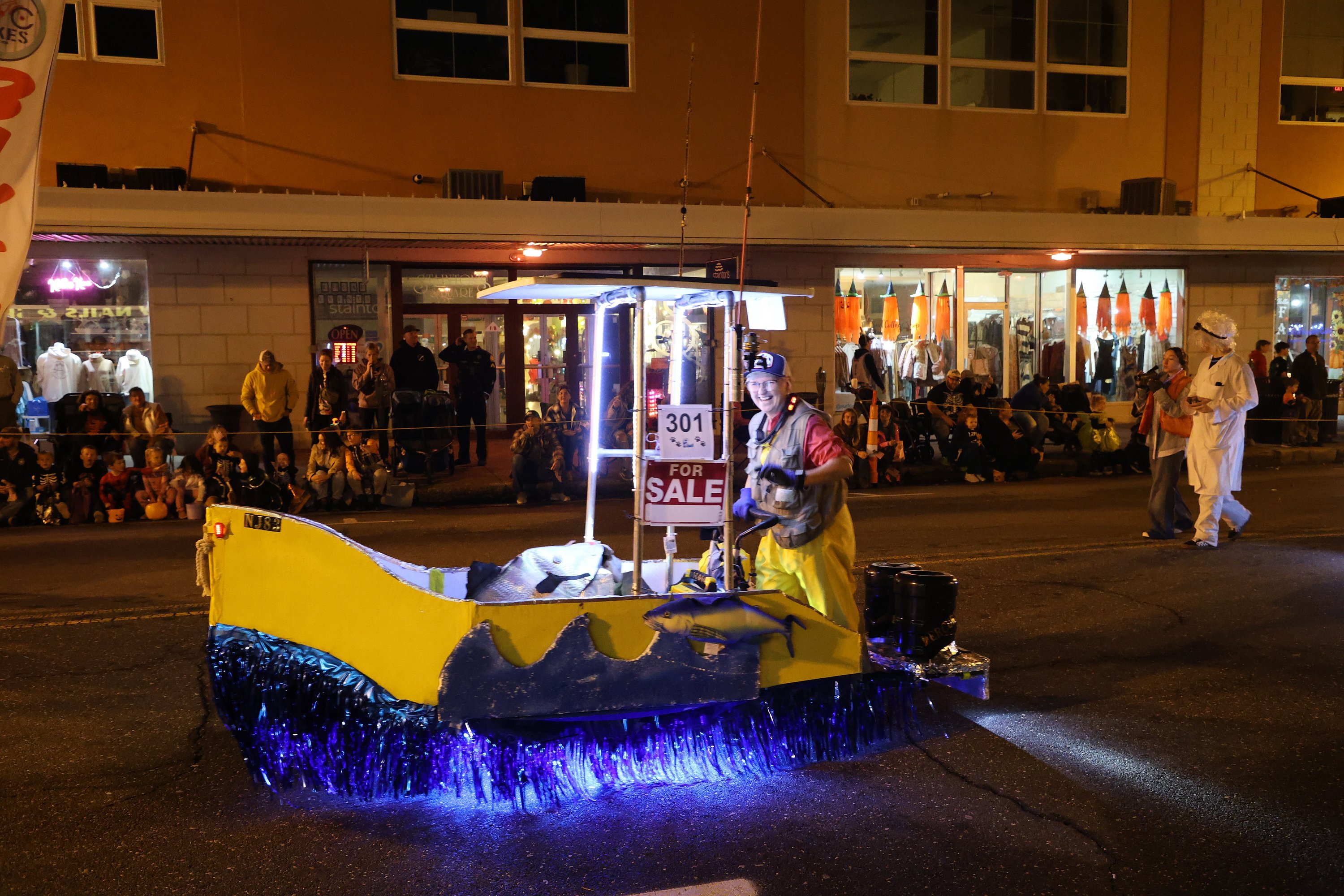 Ospina said her favorite part of the parade was a “Jaws” themed float, featuring a giant shark and beach props, while Nicholas said he loved collecting candy from the costumed marchers handing it out along the route.