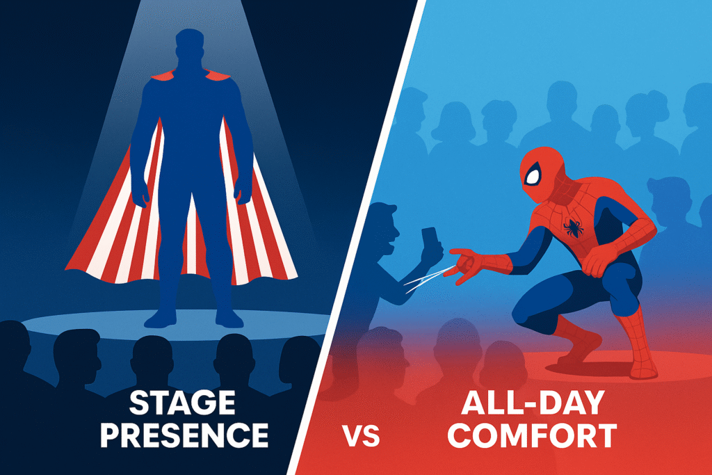 Slip into Spider-Man, and the opposite happens. Kids run up for high-fives, adults grin, and fans instantly engage. You’re approachable, playful, and lighthearted.