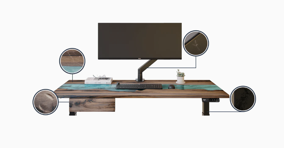 The desk frame determines height range, not the desktop, so every Desky Dual desktop option reaches the same 23.6-inch minimum. Melamine is the most affordable finish. The hardwood desktop is Desky's top seller for buyers who want a premium surface without paying boutique furniture prices.