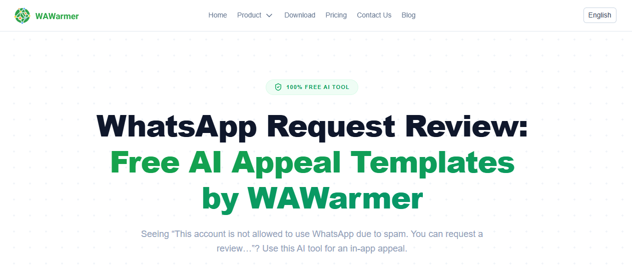 This is where WAWarmer steps in as a powerful and practical solution. Designed to simplify the recovery process, WAWarmer offers a free AI-powered tool that helps users generate professional appeal messages and submit them through the official WhatsApp review system.