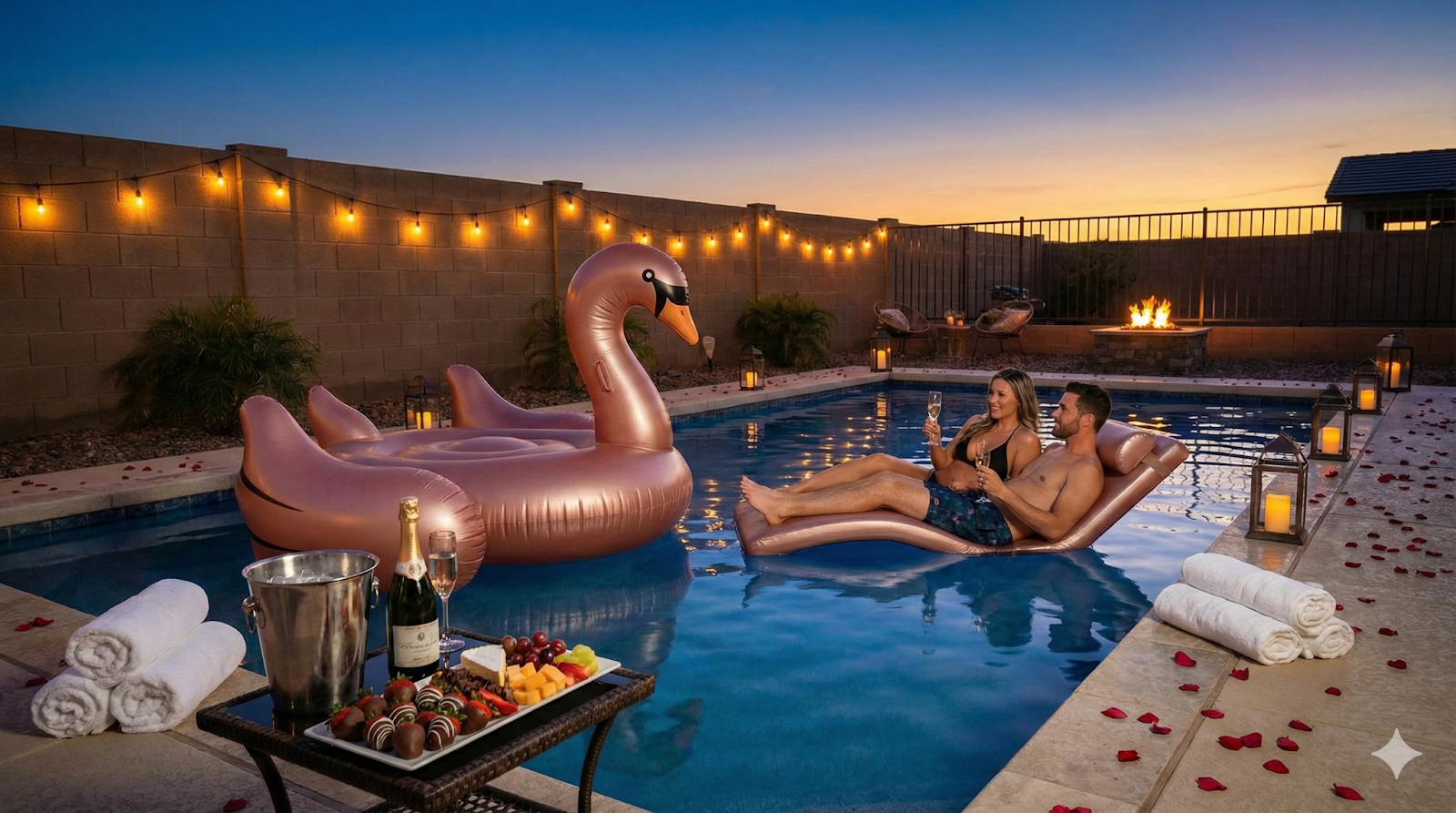 There’s something undeniably romantic about a calm pool at night: the water catching the light, music playing softly in the background, and the whole setting feeling relaxed and unhurried. It's a unique and refreshing way to celebrate love, offering a blend of relaxation and fun, so grab your pool floats and start planning a night of romance.
