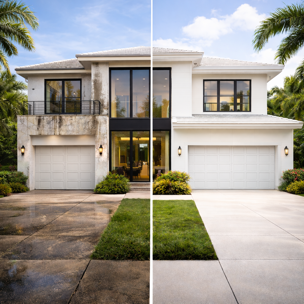 Stucco and siding collect grime quickly in Florida’s climate. A full exterior wash can make your home look freshly painted.