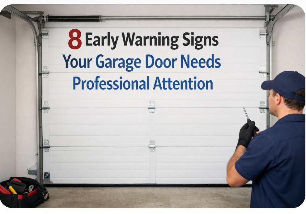 Identifying these issues early allows for targeted part replacement rather than an entire system overhaul. Below are 8 signs that your door’s mechanical integrity is compromised and requires a professional assessment.