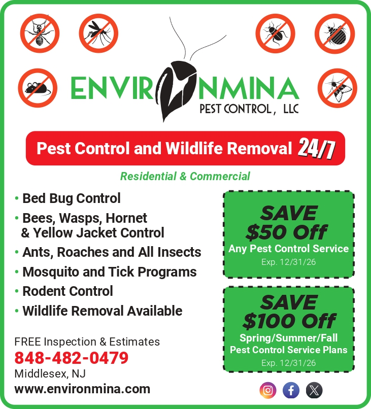 If you’re a New Jersey property owner looking for a pest control partner who understands the unique demands of this state — its climate, its housing stock, and its diverse pest pressures from county to county — Environmina Pest Control offers customized programs built for New Jersey homeowners and landlords. From spring carpenter ant and bee treatments to bed bug inspections, rodent exclusion, and year-round eco-friendly maintenance programs, their local team has the expertise to keep your property protected in every season.