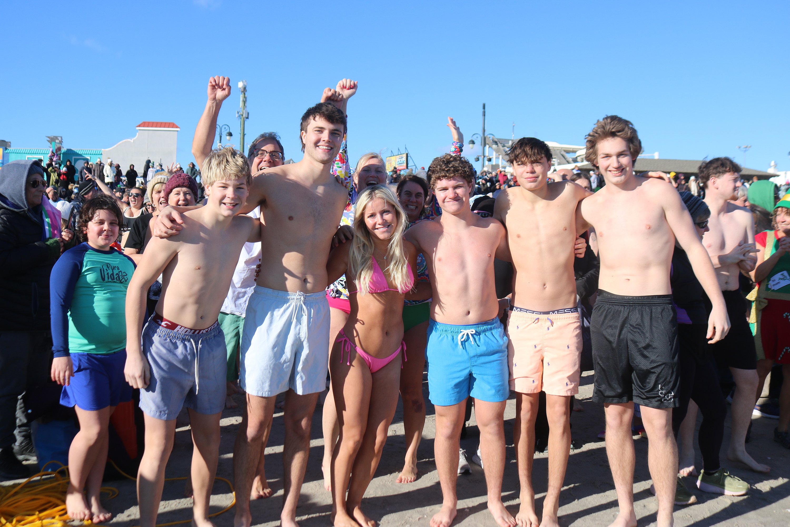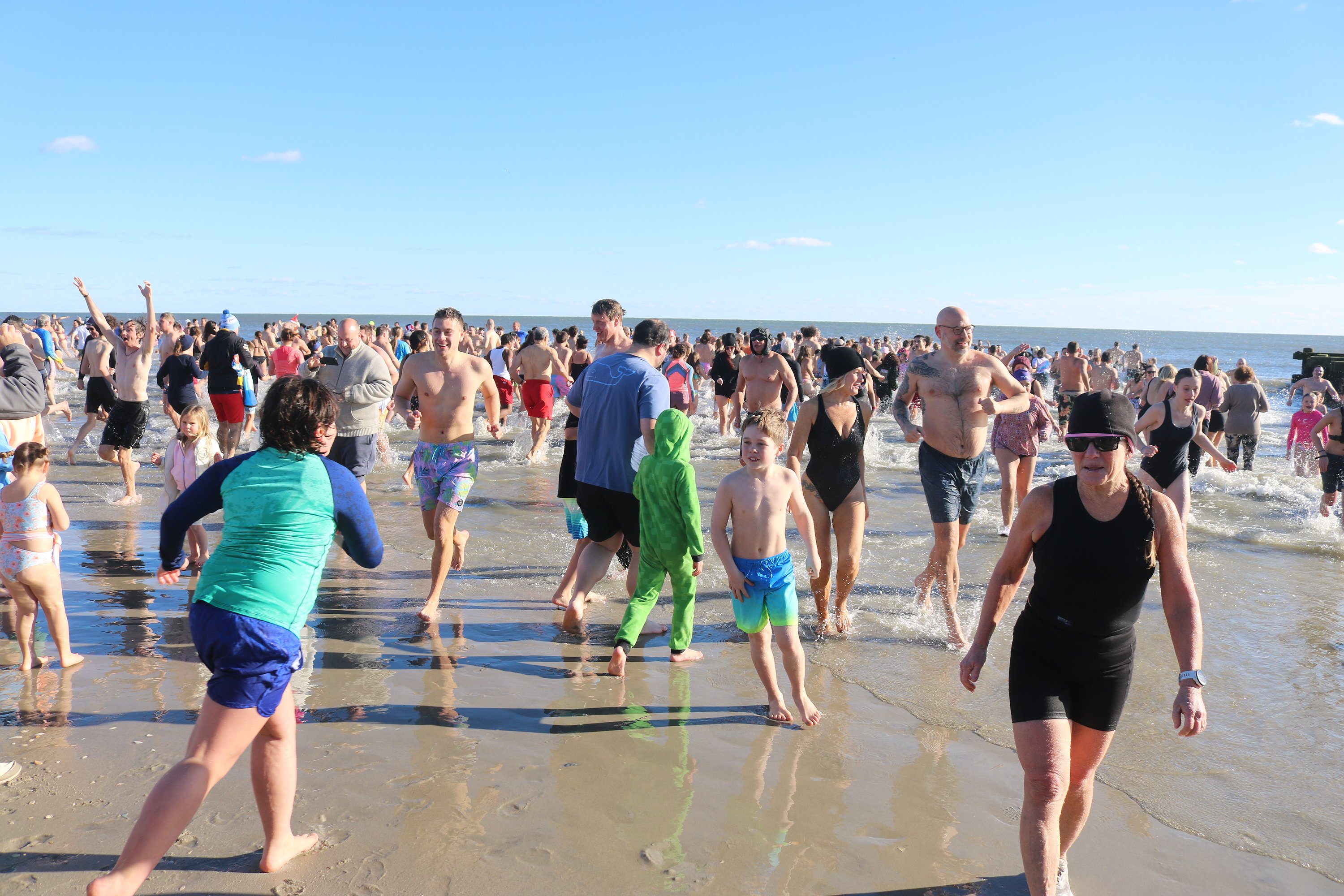 Allegretto, who serves as the event’s announcer each year, said the police told him there were thousands of people on the beach. More than 1,000 took the plunge, he noted.