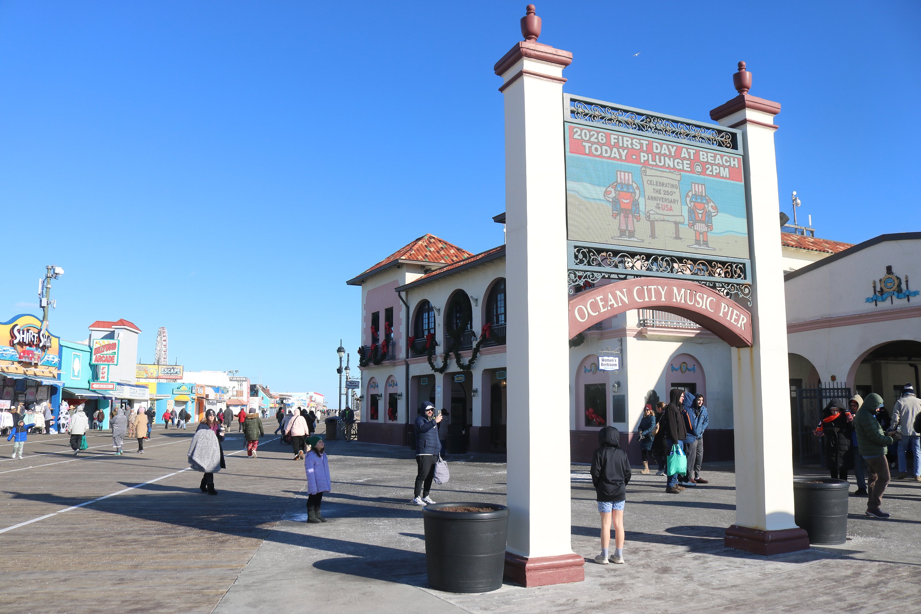 The plunge is one of the headline events during Ocean City’s family-friendly New Year’s Eve and New Year’s Day celebration attracting thousands of visitors to town each year. Illustrating the plunge’s drawing power, the Boardwalk was packed on Eighth Street near the Ocean City Music Pier.