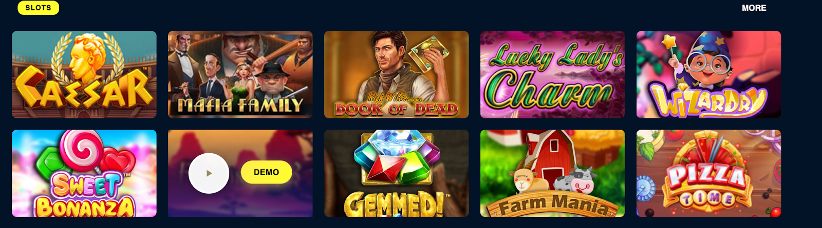 The casino slots section includes more than 550 titles. Both classic and modern online slots are available, covering a wide range of volatility levels and themes.