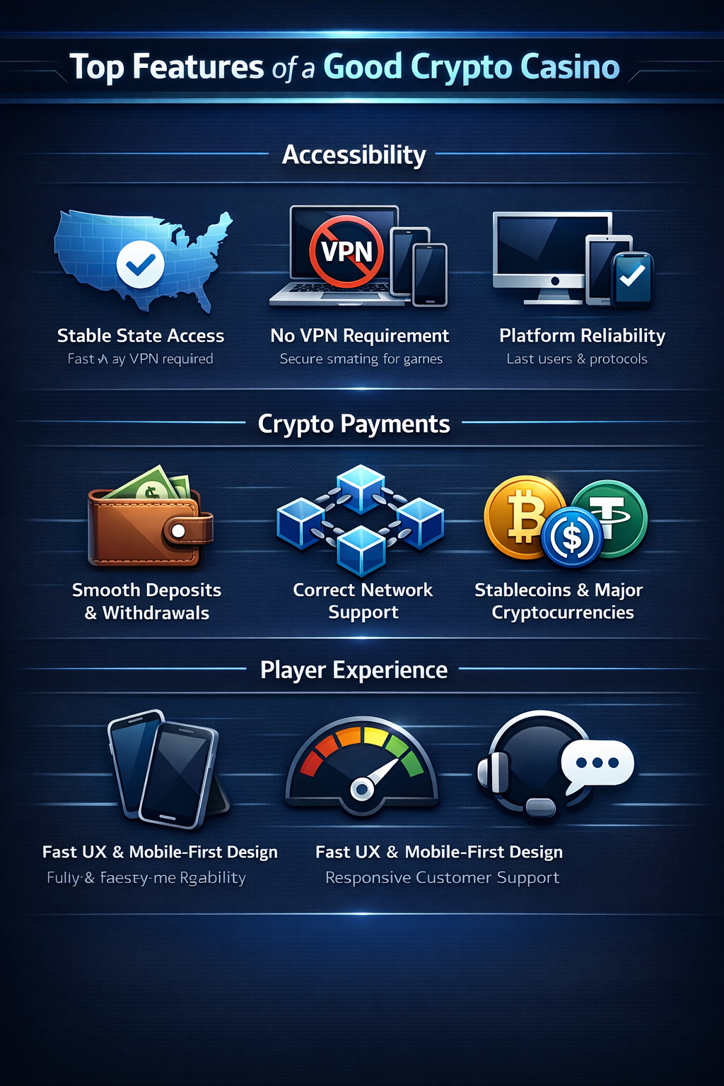 A strong crypto casino in the USA should maintain stable access across most U.S. states without sudden restrictions, region-based errors, or account limitations that vary unpredictably by location.