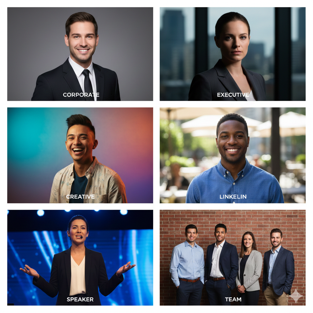 The practical advantage: you can get a corporate headshot, a creative industry headshot, AND a LinkedIn headshot from the same source, with consistent quality.