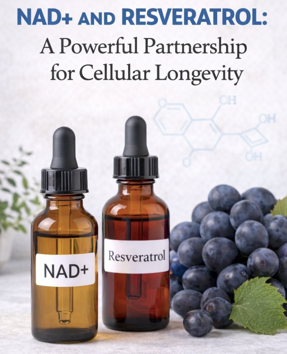 Research suggests this combination may produce effects greater than either compound alone. NAD+ precursors ensure adequate substrate availability for sirtuin function, resveratrol enhances sirtuin activation and activity, together they support multiple longevity pathways simultaneously, and the combination addresses both the supply and activation aspects of the sirtuin system.