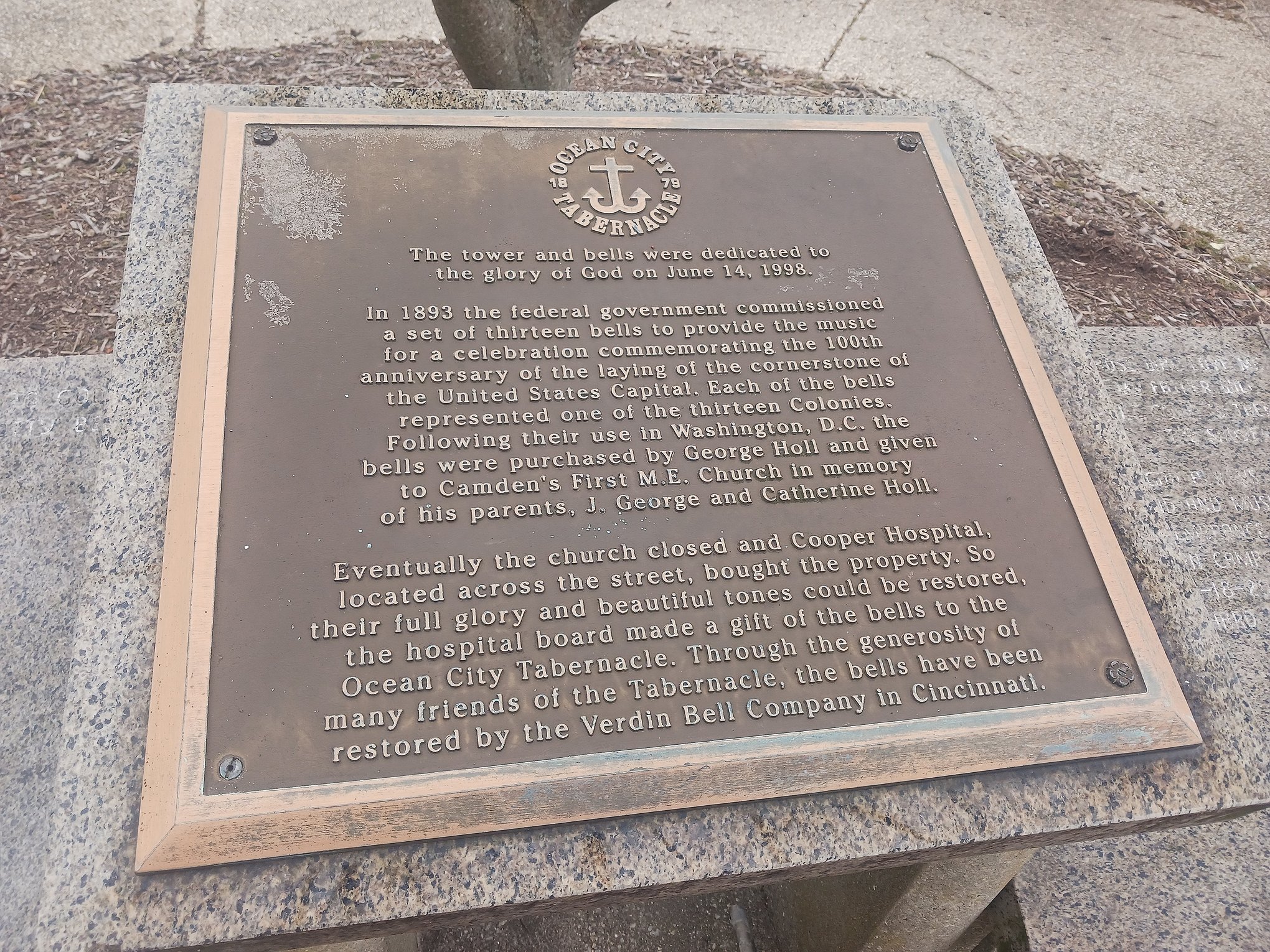 “Through the generosity of many friends of the Tabernacle, the bells have been restored by the Verdin Bell Company in Cincinnati,” the plaque reads as part of their dedication on June 14, 1998.