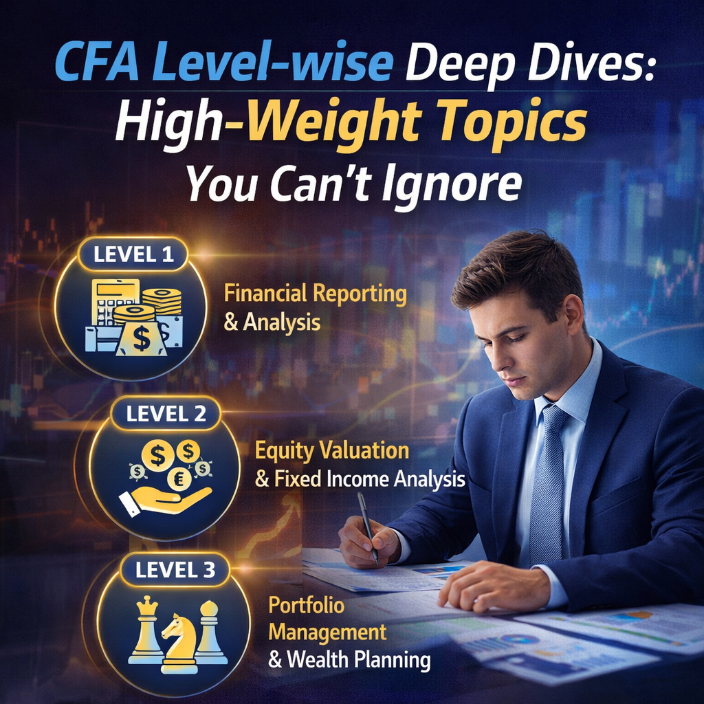 The CFA syllabus is famous for its tough syllabus and broad coverage of investment and financial knowledge. But not all topics have the same weightage in the exam. The syllabus is divided into Level 1, Level 2, and Level 3, which are based on specific topics that are comprehensively covered in the exam and are required to develop a strong foundation in finance. High-weightage subjects must be identified by candidates because this knowledge enables them to create a study plan that leads to efficient exam preparation and successful first-attempt pass results.